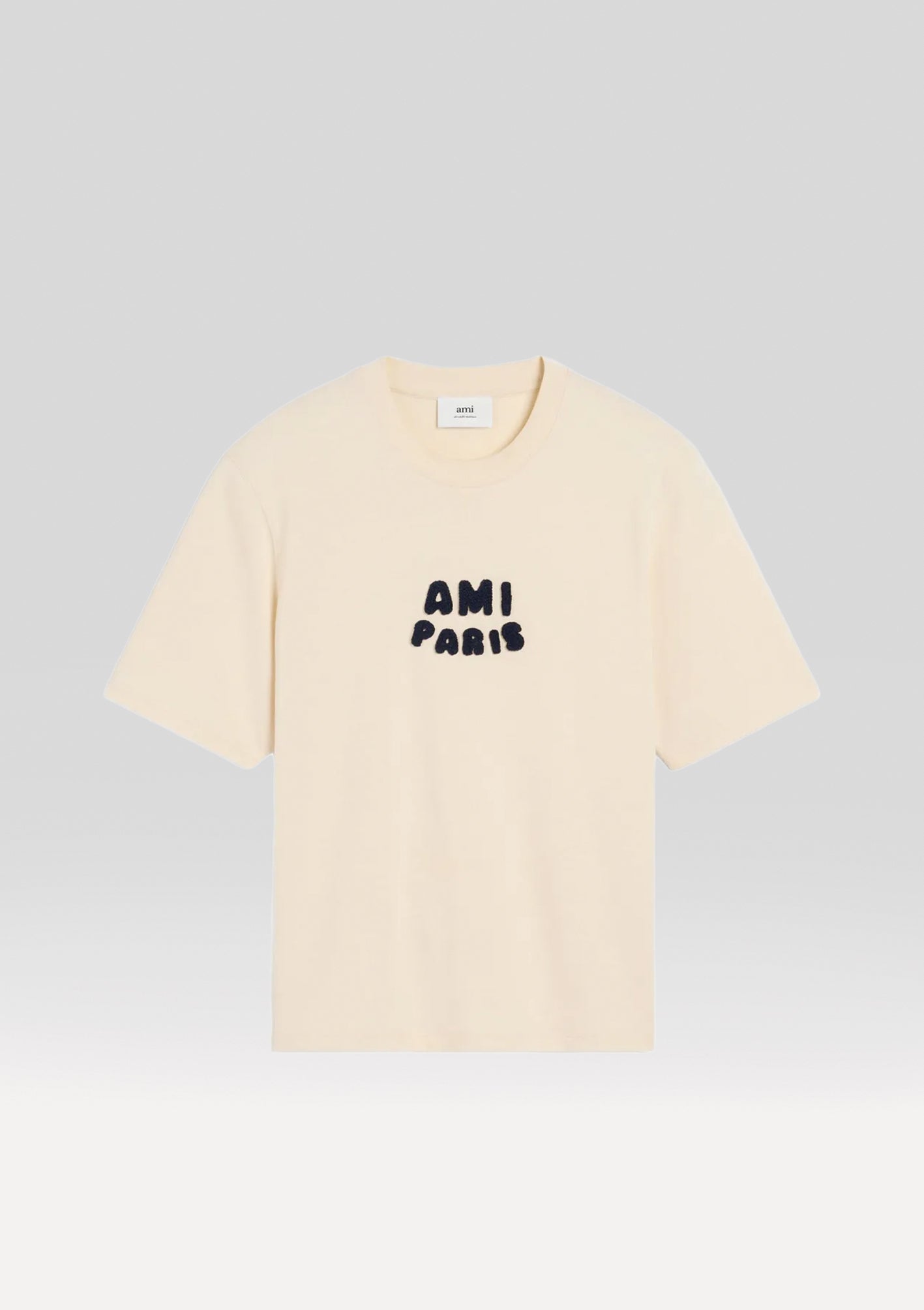 T-shirt AMI Paris in morbido cotone biologico con toppa lavorata a maglia al centro.